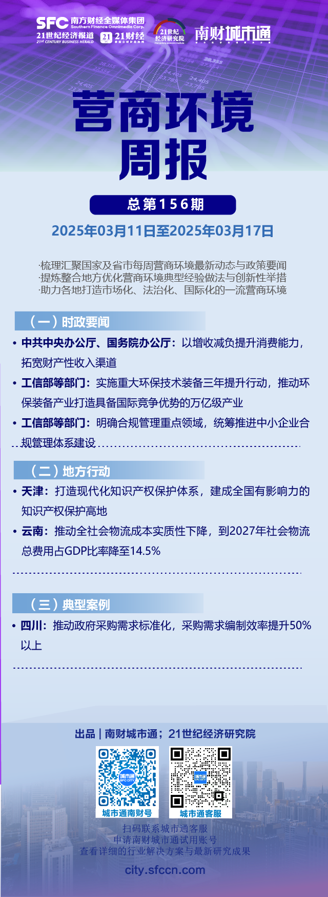 营商环境周报(第156期)全方位提振消费市场,实施重大环保技术装备三年提升行动