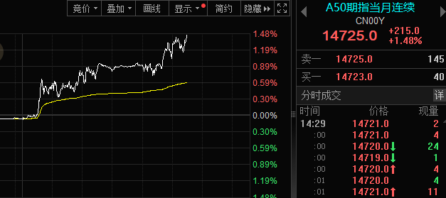 在美股和港股走势出现停滞的同时,A50指数站上了14700点的关键水平刷新了去年10月以来的新高。多头在14180点附近强势突破显示出当前强劲的上行动能,若不跌破图中趋势线,对后市继续保持乐观。