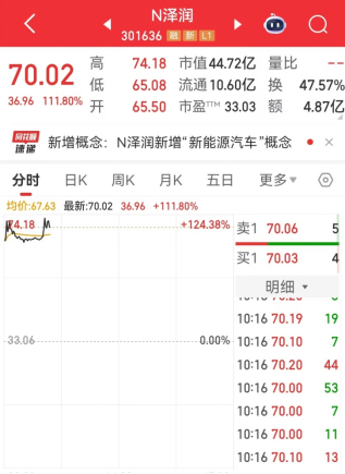 今日共有两只新股上市,为创业板的N泽润、科创板的N汉邦。两只新股双双大涨。
