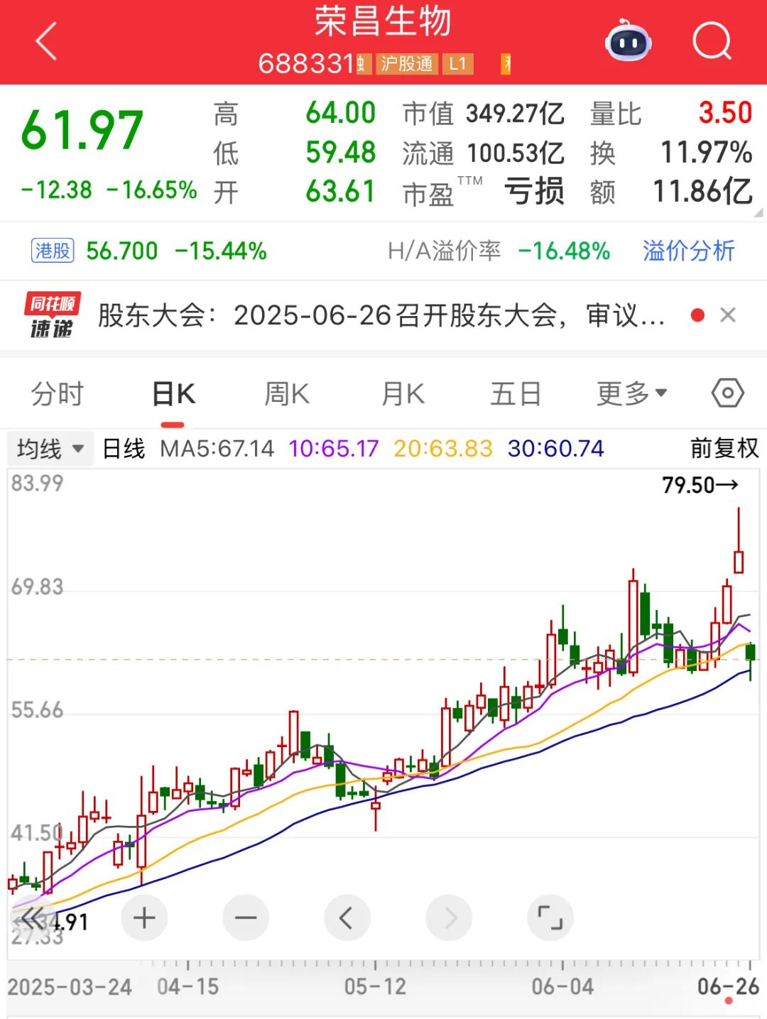 就在昨日,荣昌生物A、H股双双创出年内新高,今天早盘却突然大幅低开,其中A股一度“20cm”跌停,H股一度暴跌逾25%。