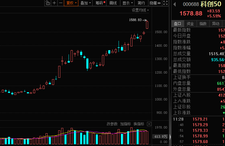 长假后第一天,A股主要指数全线高开,上证指数突破3900点,科创50指数涨势最大,上午收盘涨幅超过5%。
