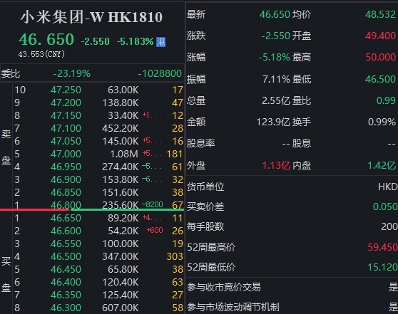 港股市场上,小米集团午后持续跳水,跌幅一度扩大至5%。