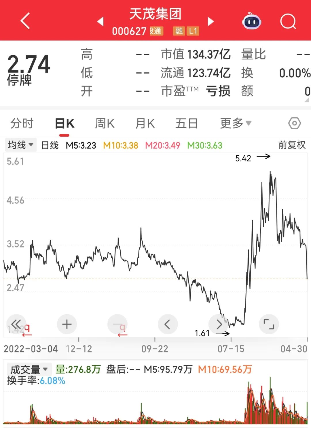 4月28日,天茂集团首次发布公告称因定期报告涉及的部分信息需要进一步补充提供,可能无法按期披露2024年年报和2025年一季报,4月29日开盘后,公司股价大跌10.06%一字跌停。4月30日,公司确认无法在法定期限(4月30日)内披露定期报告。5月6日,公司股票正式停牌,并收到证监会的立案告知书。