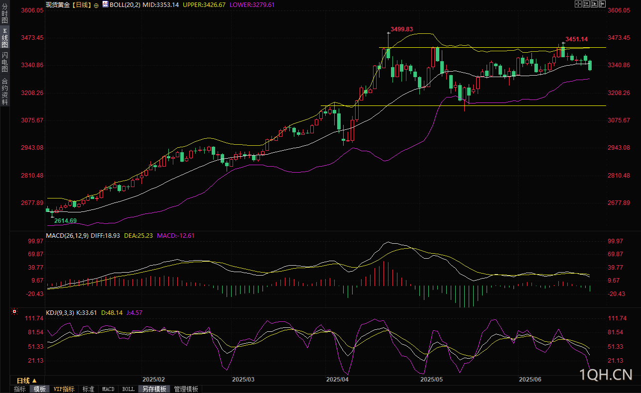 然而,停火协议的稳定性并非毫无争议。就在特朗普宣布停火数小时后,以色列军方称伊朗发射了数枚导弹,尽管特朗普随后重申停火“现已生效”。这一事件为市场增添了短暂的不确定性,但整体来看,停火消息仍主导了市场情绪。以色列谢克尔兑美元跳升1%,创2023年2月以来高位,反映了投资者对地区局势缓和的初步乐观态度。地缘政治风险的减弱直接削弱了黄金的避险吸引力,导致金价承压下行。